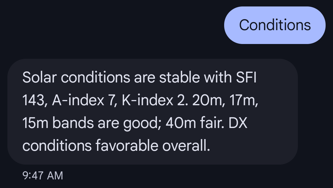 For this, current solar conditions and band status can be easily acquired through xOTA using the method of your choice.